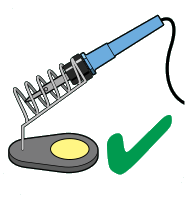Am Arbeitsplatz sollte eine stabile und sichere Ablage für den Lötkolben vorhanden sein. Der Lötkolben darf keine Teile der Ablage mit der heißen Lötspitze berühren, wenn er abgelegt wird. Ebenfalls muss darauf geachtet werden, dass bei der Arbeit keine anderen Bauteile oder Kabel gegen die heiße Lötspitze kommen können.