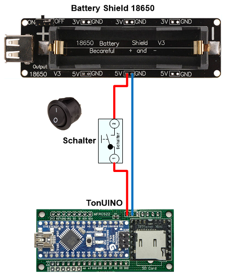Versorgung aus Power Bank / Battery Shield mit einfachem Schalter